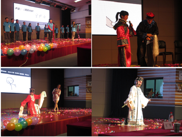 接下来便是各个班级带来的精彩表演。这些表演形式各异,题材百变,有关于社会热点的奇思妙想,有结合校园生活的倾情演绎……为观众呈现出了一场无与伦比的视听盛宴。晚会上,郑翔的《想你的夜》和李家旭的《I believe》为同学们带来了不一样的恋爱滋味,刘宇、施佳晶的深情对唱《way back into love》则将甜蜜演绎到了极致;两个自编的短剧《皇帝选妃》和《骚年们的奇幻之旅》用幽默的语言和夸张的表演,使同学们沉浸于欢乐的海洋之中,赢得了一阵阵雷鸣般的掌声;同时,本次晚会还有其古典而充满艺术气息的一面,《新贵妃醉酒》与昆曲节目让人眼前一亮,当看到台上的人翩翩起舞时,台下的同学都醉了。除此之外,温暖的手语节目《明天,你好》和清新的笛子独奏也给同学们留下了深刻的印象。而晚会最大的亮点便是由材料1104班8位同学带来的舞蹈串烧《4班 style》,他们将当下的时尚舞蹈熔于一炉,时而奔腾豪迈,时而轻柔优美,引得全场观众多次惊叹,大呼过瘾,一举夺下全场最受欢迎节目的桂冠。