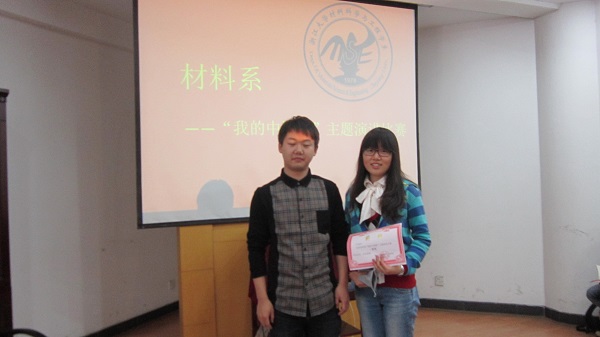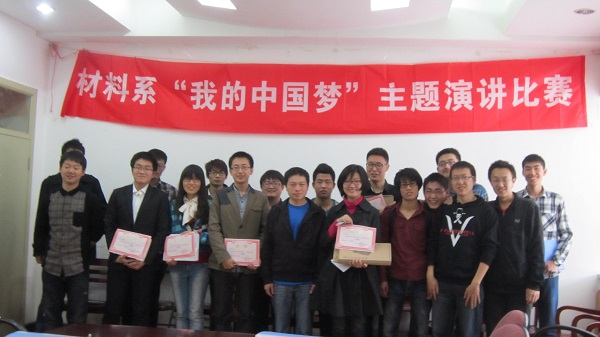 为深入学习贯彻党的十八大精神,引导广大青年学生深刻学习领会习总书记对“中国梦”的深刻阐释,畅谈求是学子心中的“中国梦”, 材料系于2013年4月12日在曹光彪大楼324举行了一场简洁而不简单的“我的中国梦”主题演讲比赛。