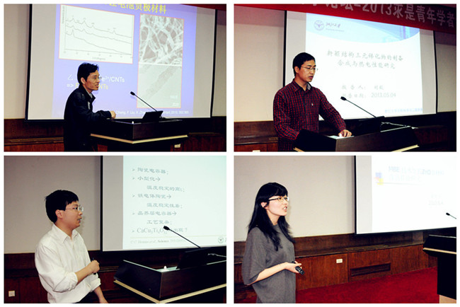 为纪念“五四”爱国运动94周年,激励全系青年为实现中华民族伟大复兴而努力奋斗,5月4日上午,求是材料科学论坛之“五ž四”求是青年学者专场报告会在玉泉校区邵科馆212举办,报告会由材料系青年教师发展促进会主办,材料系主任叶志镇、党委书记王东、浙大电镜中心主任,中科院院士张泽、材料系系友,原浙江大学宁波理工学院院长许为民及材料系青年教师、学生参加了本次活动。