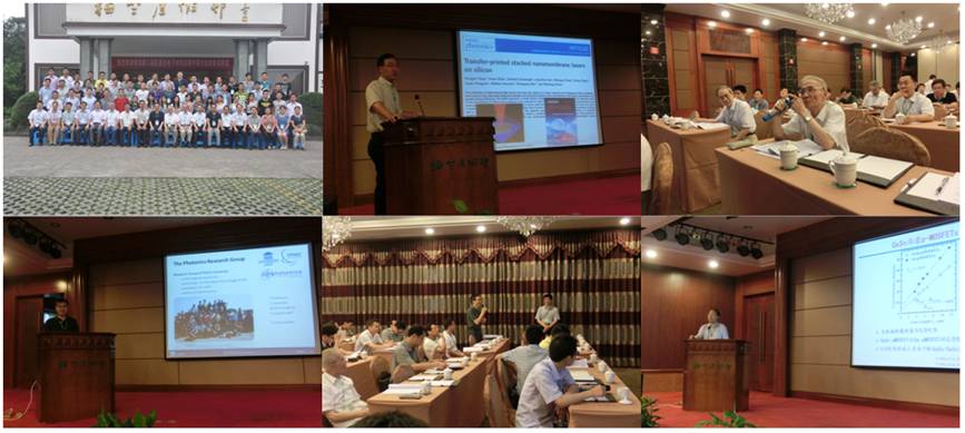 会议从2013年6月20日上午8:30正式开始,就硅基片上互连所关心的相关研究进行了深入的探讨以及广泛的交流,主要包含有硅基混合激光、硅基光电集成、硅基薄膜发光材料及器件、锗基发光材料及器件、量子点发光材料及器件、硅基薄膜发光材料及器件以及硅基太阳能材料等主题。与会近40名学者就如何制备硅基光互连中所需的光源提出了自己的可行方案并就相关研究做了口头报告,每一次报告都在激烈的谈论声中以及热烈的掌声中结束。各个专家在分享各自的研究成果的同时,也了解了其余专家学者的最新研究进展。经过为期两天的探讨与交流,会议最终于6月21日下午17:00圆满结束。