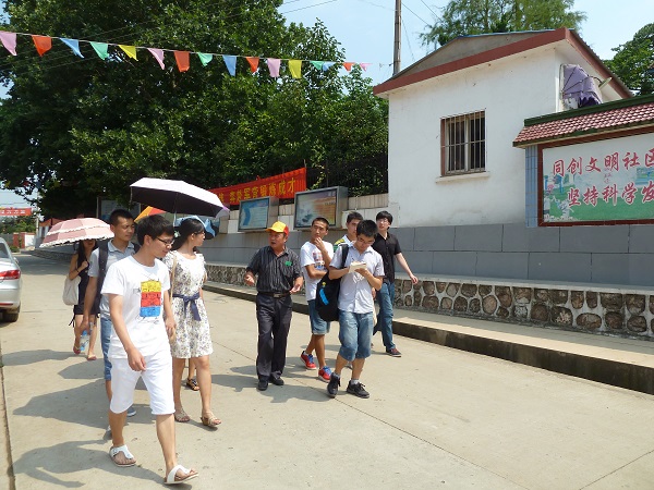除此之外,队员们还与大学生村官代表王过江进行了简短的访谈。作为大学生村官的一员,他已经在锁石村工作了两年多。提到自己的工作经历,王过江表示,他起初也像大多数大学毕业生一样,对职业及发展城市迷茫;但他想通过务实的工作来实现自己的梦想,这个想法使他选择来到基层工作。他说两年的基层工作使自己从看似琐碎的基层工作中体会到了“中国梦”的真正内涵,作为一名当代大学生,应树立正确的择业、就业观,脚踏实地,将个人梦想与国家的复兴梦紧密结合起来。基层工作锻炼了他,给他的双眸染上一股子自信,使他的言谈举止成熟而稳重。他的所见所闻使他坚信祖国正不断发展着,他于未来的期许不是架在空中的梦,而是可以通过自己的努力而达成的梦。