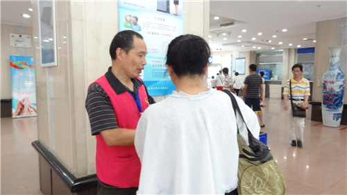 孔师傅还是一个幽默并且热心的人。因为暑假有很多学生也参加了这个志愿者活动,浙二医院会优先安排学生,因此,像孔师傅这样的志愿者都安排为每周只来一次。出人意料的是,今天上午我再次发现了孔师傅的身影。我问孔师傅今天怎么又来了,孔师傅回答说:“呵呵,今天懒得煮饭,所以到这边蹭饭吃。”