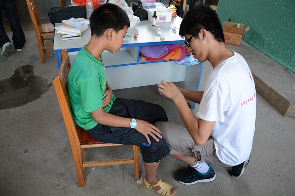 今天下午,五年级的班主任林欣突然喊我们说有个叫蒙琦的孩子肚子疼,找团队医疗队长小刘拿点药。小刘在仔细的询问了他疼痛的部位后,初步判断出是吃坏了东西引起的肠胃不适,小刘就给了他一些双黄连口服液之类的治感冒和肠胃不适的药,然后告诉他回家休养,如果下午还是没有好转,就再带他去医生那边。蒙琦听了小刘的话之后,就准备回家。小刘怕他在路上出现问题,于是就准备送他回家。