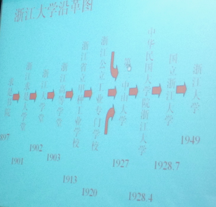 建国后,浙江大学经历了分分合合,最终还是经过四校合并,同源归宗,形成了如今的一流大学,展示了路甬祥校长对求是创新精神的解读后,王东书记表达了对浙大未来美好的祝愿以及对光大求是精神的坚定信念。
