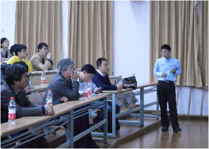 会上,来自上海硅酸盐研究所的三位研究员进行了报告。首先,董显林主任介绍了“中国科学院上海硅酸盐研究所信息无机功能材料与器件研究概况”,简单阐述了其中心在压电铁电陶瓷、弛豫铁电单晶、磁电复合薄膜以及半导体敏感陶瓷材料等方面的研究进展与实验室科研设备状况。之后,刘志甫副研究员重点介绍了了“LTCC 材料与器件研究”的详细内容,就LTCC系统工程、LTCC流延浆材料、LTCC材料与银电极共烧等方面展开了分析。最后,曾华荣研究员以“无机功能材料纳米结构与外场互作用的扫描探针显微术研究”为题,围绕电响应力显微术(PFM)扫描探针声学成像(SPAM)与扫描探针热学显微术(SThM)等技术对其研究领域展开详细论述。精彩的报告得到了广大师生的强烈反响,现场气氛热烈。