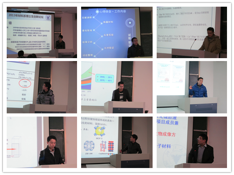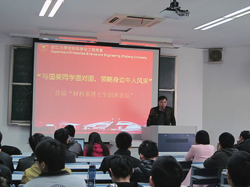 为促进我系博士生间的学术交流,开阔博士生的研究视野,12月13日,材料系第一届博士生创新论坛在曹光彪二期101顺利举行。2013级全体博士新生参加了论坛,我系2013年度国家奖学金获得者和竺可桢奖学金获得者进行了汇报,与同学们交流了材料研究中的最新进展以及科研工作中的心得体会。材料系党委书记、系副主任王东老师、系主任助理金一政老师受邀参加了论坛。