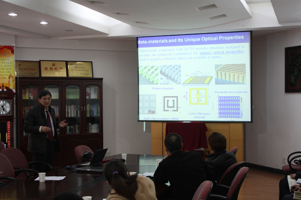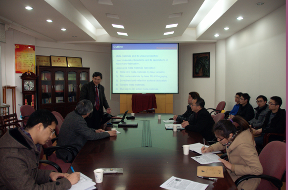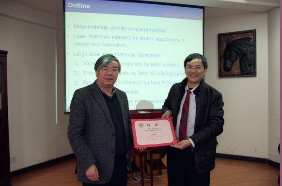 授聘仪式后,洪明辉教授为到会师生做了“超材料激光加工制备技术”学术报告。学术报告在近年来国际学术界在太赫兹波段、红外及可见波段应用超材料的结构设计与理论计算、超材料原型器件制备与性能验证等方面基础研究不断取得突破性进展的背景下,针对产业界对规模制备实用超材料的急迫需求,介绍了课题组广受国内外同行关注的激光加工新技术方面的研究进展,以及采用激光增材制造技术制造柔性超材料等方面的研究工作。洪明辉教授的学术报告会采用交互式交流讨论方式,到会老师和学生就感兴趣的问题,进行了充分的交流和研讨。
