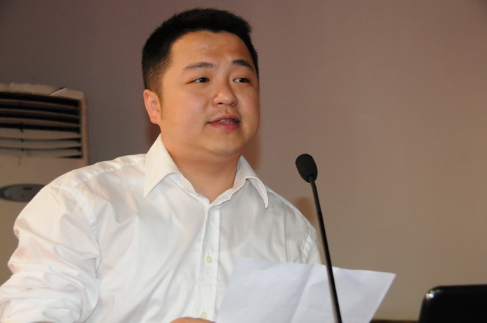 随后的报告会由青年教师发展促进会副会长李翔老师主持。第一位主讲是杜宁老师。杜老师的报告主题是纳米管在锂电池和气敏传感器中的应用研究。纳米管材料具有独特的一维纳米结构,大的比表面积以及优异的物理化学性能,受到广泛研究关注。采用已有的一维纳米材料作为模板可以制备一系列的碳纳米管,在碳管上沉积CeO2-SnO2可以做选择性气敏传感器。利用可溶性的一维纳米材料做模板,可以制备一些性质活泼的材料的一维纳米材料。Si可以做锂离子电池负极材料,但是其嵌入锂体积膨胀,循环性能较差,将Si和其他材料例如碳复合,形成一维核壳结构,可以显著的改善其充放电性能。