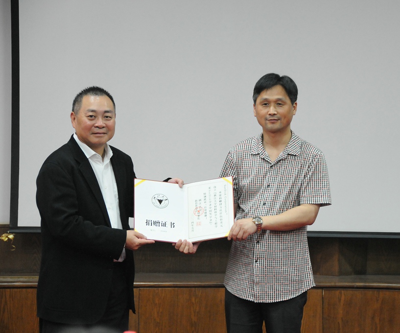 浙江大学教育基金会副秘书长顾玉林代表学校教育基金会向SanDisk公司颁发了捐赠证书并与王光伟先生相互赠送了纪念品。