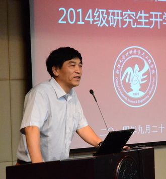 学院学术委员会主任叶志镇教授首先发表讲话,他说,作为研究生第一重点就是要遵纪守法、端正学风,做学问要养成良好的科研态度,“像外行一样思考,像专家一样认真实践”,在科研的道路上把握方向,不懈努力。随后,主管研究生教育工作的陈立新副院长作《材料学院研究生教学培养简介》报告。陈老师立足学院实际情况,介绍了学院的软硬件条件与管理制度,深化了研究生课程与培养体系的重要意义,陈老师的报告细化要点,着重强调了今年的新政策新变化,为在场同学解答了许多心中的疑惑。