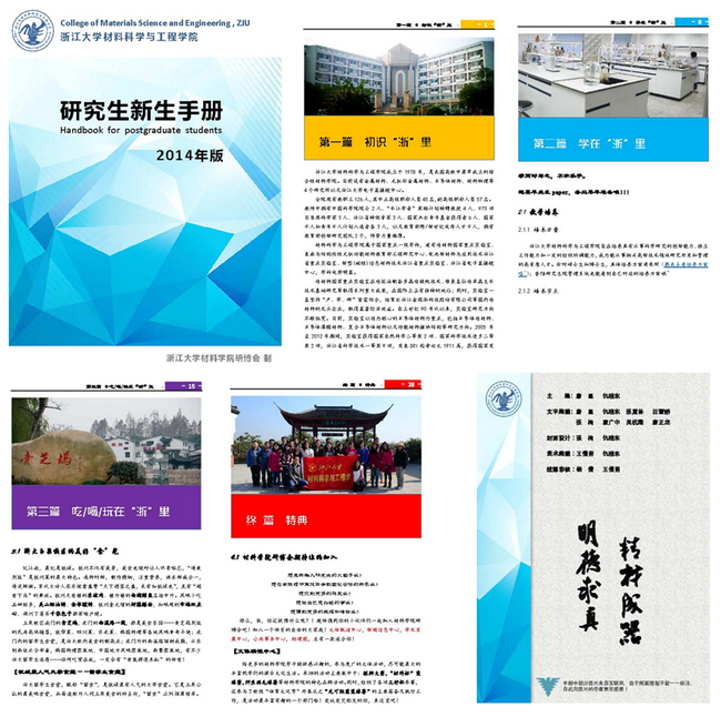 对于刚入学的新生而言,一本信息全面、内容详实的新生手册是他们快速熟悉校园生活的必备索引。研究生作为每年新生群体中不可忽视的一部分,在其学习、生活当中有很多区别于本科生的地方,而校内却有鲜少看到有专门为他们量身打造的新生手册。为了填补研究生新生手册的空白,也为了帮助材料学院研究生新生更快、更好地适应浙江大学的学习、生活环境,完成从本科生到研究生的身份转换,院研博会精心编写了第一版(2014)“材料学院研究生新生手册”。