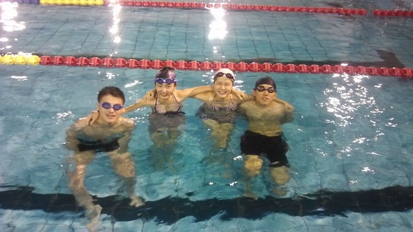 虽说是加热过的水,但其实还是很冷的,我们纷纷跳下水,其中有些人水性还是不太好的,这时那些水性好的便自觉当起了教练,保护着他们在水中的安全,我们在水里还组织了蛙泳比赛,即一来一回比谁的速度快,晚上的游泳池人比较多,游泳的时候要不停的避开“障碍物”,这对那些技术不太好的同学也造成了一定的挑战。但在我们的帮助下,他们也越来越熟练。游得累了,我们便开始学习新的游泳方式,自由泳、蝶泳等。大概到九点,游泳馆快要闭馆了,我们准备回去。
