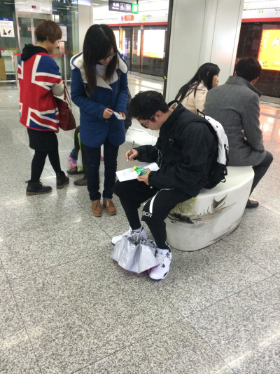3月15日下午,材料学院12级SQTP项目组成员们在杭州地铁一号线沿线进行了乘客满意度调查的问卷发放活动。9名成员分为三组在凤起路站、武林广场站、九堡站、文泽路站等地铁一号线沿途站点进行了问卷发放和回收,同时我们也准备了便利贴作为小礼品感谢参与的市民,调查活动进展顺利。