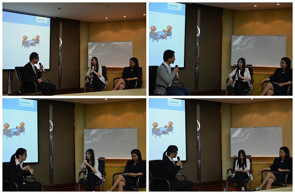 2015年4月4日下午4:00,由材料学院研博会助理团主办SQTP项目“模拟面试”活动在永谦活动中心第一报告厅顺利展开。本次模拟面试由来自西门子公司的黄希然和李英兰两位HR亲自担任面试官。材料学院的张格格、李玲玲、唐星和邢欢四位同学体验了本次模拟单面。到场的还有来自材料学院各个专业的学生。
