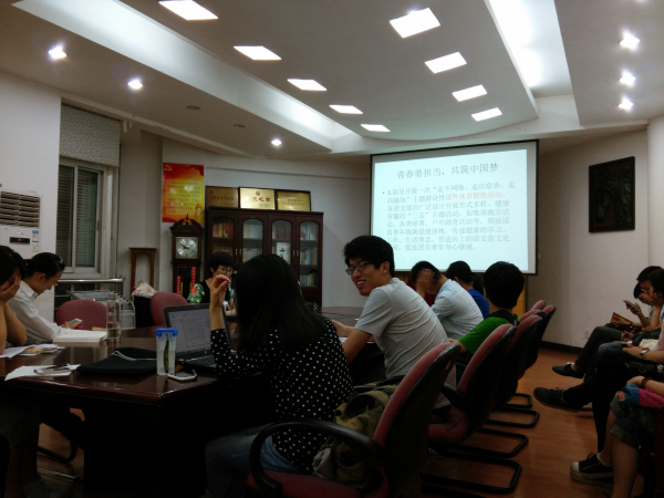 5月15日晚上八点半,材料学院各班班长和团支书一起来到了曹光彪大楼三楼的会议室进行团日活动展示。团委书记杨倩老师和副书记嵇琪华老师也同时出席了这次展示。