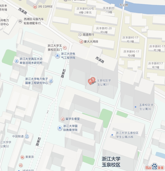 报到地点:浙江大学玉泉校区学生公寓31幢(近学校北门),具体地点如下图所示。