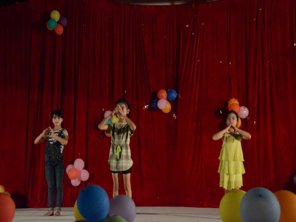 第一个上台的是三位小朋友带来的《让青春起舞》舞蹈表演,她们曼妙的舞姿点燃了观众的热情给晚会带来了很好的开头。