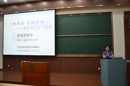 本次讲座由化工学院郭彪老师和材料学院杨倩老师主持,讲座邀请了国家二级心理咨询师龚惠香老师作为嘉宾,龚惠香老师为同学们详细介绍了学习生活中各种情绪的产生、发展以及管理的方法,现场气氛轻松活跃,同学们也积极踊跃的与老师交流自己的观点。