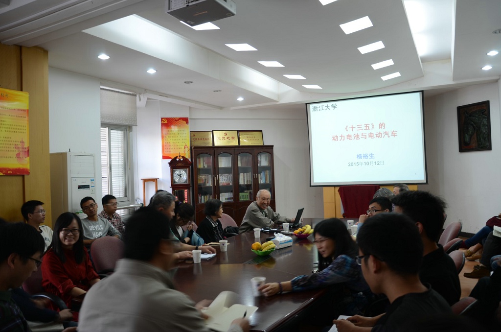 本次学术讲座,杨院士以“《十三五》的动力电池与电动汽车”为题,给予了精彩的学术报告。报告主要围绕《十三五》电池技术发展,对影响电池发展的一些认识问题进行了澄清,并对高安全性水体系电池的发展以及如何用好现有电池发展电动汽车给出了独到的见解。到场的学生和老师众多,座无虚席,不少听众还来自化学和化工等其他院系。我院韩高荣院长及多位教授也出席了讲座与学生一起认真地聆听了此次讲座。