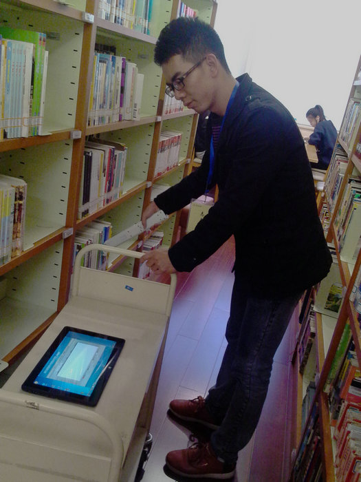 1031日,清晨八点,第一组的同学准时在北门集合,乘坐公交抵达杭州市图书馆生活主题馆。通过与馆内工作人员的协调交流迅速分工,单人或组队分赴不同楼层,有条不紊的开展工作。首先,收集整理读者返还及借阅过图书,将图书摆放回原来的位置,以方便后续读者查阅,这项工作每隔一到两个小时就要收集一次,比较繁琐。此外,为方便读者网上查询,我们需要重新给书籍定位,这是另外一项重要而辛苦的工作。需要一手持平板电脑,一手持感应器,不断的将感应器插入每层书架的图书空隙录入书籍信息,工作量较大。另外还有部分成员负责在儿童阅览室服务,协助图书馆管理员开展亲子活动并照看小朋友的安全。由于图书馆人流量较大,一天下来工作任务还是比较繁重的,但作为一名志愿者,在“奉献、友爱、互助、进步”的志愿服务精神的鼓舞下,同志们以饱满的热情完成了一整天的服务工作。