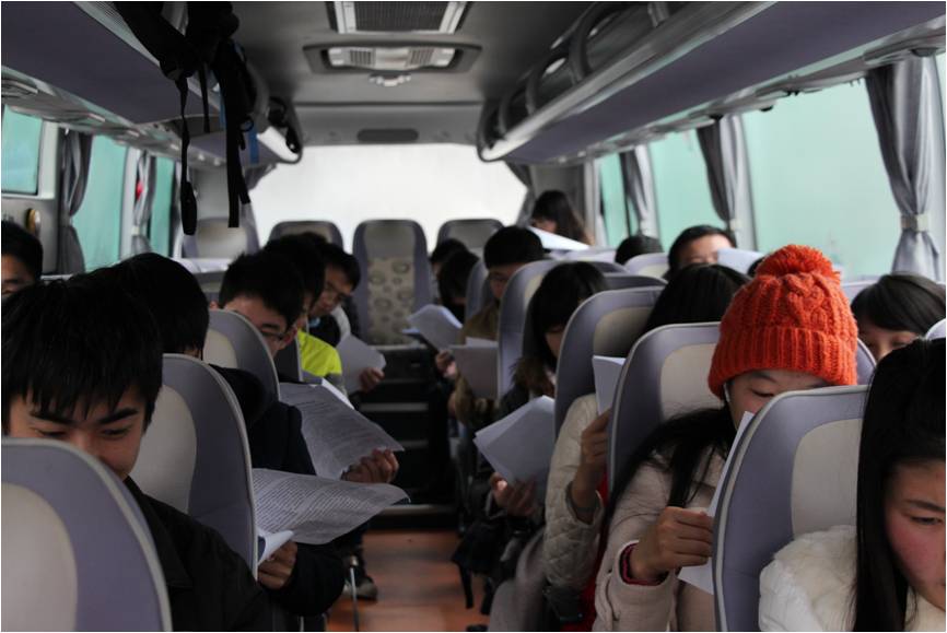 充实的一天,也是愉快的一天。参观完两个景点后我们便起程返校了,在回校的路上,为了增进感情,活跃氛围,组织委员组织大家进行了一些小游戏,让大家的关系变得更加融洽团结。