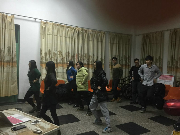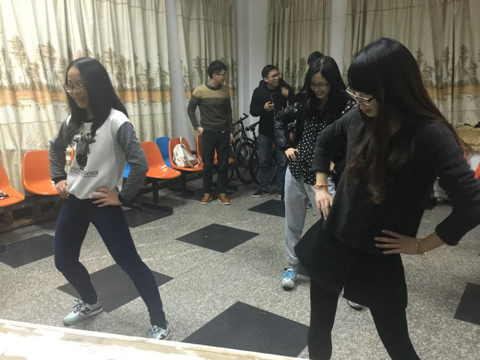 为了更好地展示项目培训成果,组员们积极报名了“材化高新年晚会”的节目,为此编排了一段舞曲串烧,由good boy、up down、shake it 三小段舞蹈组成,由于组员们的积极性非常高,同时在排练中也非常地刻苦,因此舞蹈很快成型。该舞蹈串烧节目将在2015年12月31日的趣味知识竞赛中作为开场表演。