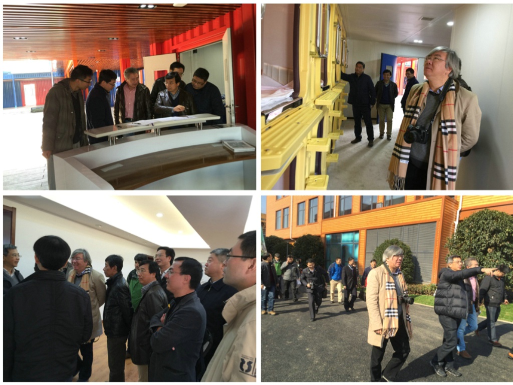 教工党支部在赴沙家浜途中,专程前往常州观摩了浙大乃至全国的绿色建筑先锋者和倡导者、无机所杨辉教授团队承担开发的“中国首个模块化快捷建造绿二星级健康智能建筑示范楼” 落成仪式。12月12日早上8:30,教工党支部的近20位老师由玉泉校区正门口出发,经过大概三个小时的车程到达常州武进区,与先行到达的杨辉老师团队会合。杨辉老师带领无机所的同事参观了箱式全模块化绿色智能建筑群,着重介绍了他主持建造的集装箱式快捷建造示范楼(图1)及其它各具特色的绿色建筑(图2)。各位老师感受到了各种先进材料在这种新型建筑中的应用,感叹箱式全模块化绿色智能建筑与其施工快捷、移动灵活等优势,必将在临建市场、旅游等永久半永久建筑领域大展拳脚,呈现出广阔发展前景。最后,各位老师于落成仪式地点合影留念,如图3。