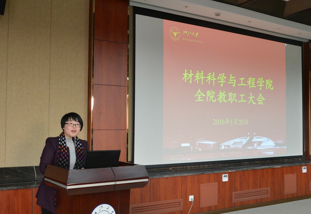 1月20日上午,材料科学与工程学院全体教职工大会在邵科馆211-212顺利召开。学院党政班子及一百余名教职工参加了此次大会,会议邀请了医学院沈华浩副院长、工研院赵荣祥院长做主题报告,并就学院教育教学大讨论、“十三五”规划、聘岗方案等工作汇报交流。学院党委书记兼副院长刘艳辉老师主持会议。