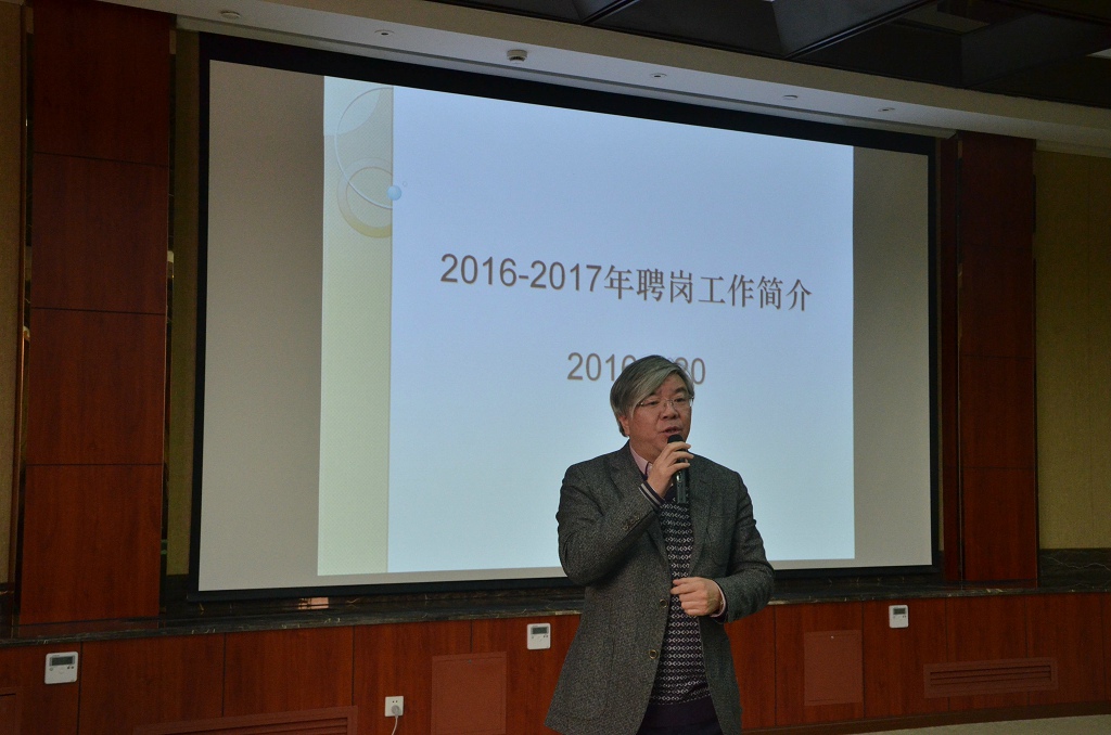 材料学院韩高荣院长做了2016-2017年聘岗方案、“十三五”规划、高峰学科建设报告。韩院长首先向与会教师详细解读了2016-2017年聘岗方案,希望借此推进材料学院人才队伍建设,韩院长鼓励广大教职工积极实施成果转化,促进科研成果产业化。同时,韩院长还汇报了“十三五”规划和高峰学科建设报告,他强调未来材料学院将继续重视研究、教学、创新三支队伍的建设。