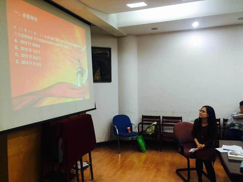在举行了座谈会之后,本科生第二支部紧接着举办了一场别开生面的理论知识竞赛,参与比赛的有支部的积极分子、党员们。知识竞赛的内容主要围绕着十八大报告中提到的一些重要知识点,比如:依法治国、社会主义核心价值观等等。举办活动的目的不仅仅在于提高同学们的理论知识水平,更在于真正让大家能够深刻体会到党的十八大报告的重要性,以及如何切身实际来理解我们党的执政理念。