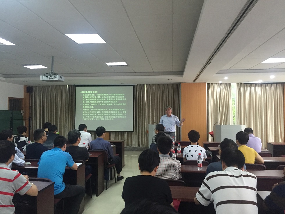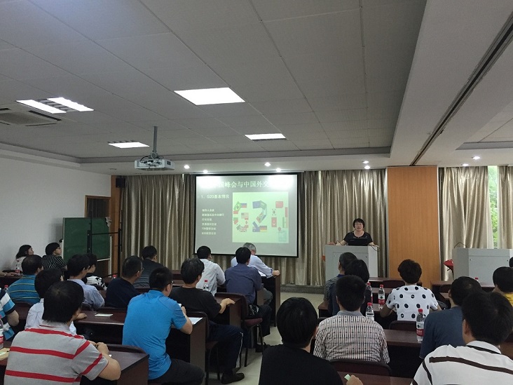 会上,学院党委书记刘艳辉传达了学校刚刚召开的校园安全与稳定工作会议精神,并专题介绍了《G20峰会与中国外交战略》。刘书记从G20峰会的基本情况、发展历史,中国参与G20峰会的历史,举办G20峰会对中国的意义等方面详细阐述了当前的形势,并就学院实验室安全整治及暑假期间学院相关工作提出了要求和部署。