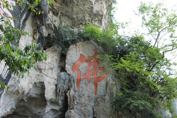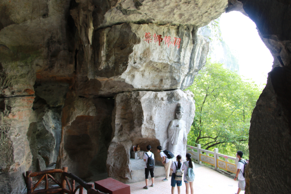 三门岩是徐霞客在1638年去宜州游历第十天所到之处,于著名的《徐霞客游记》中也有钟情的描述。在三门岩山脚下,有一座名为“西竺寺”的寺庙,实践队员在这里偶遇一位颇有修养的佛学大师。