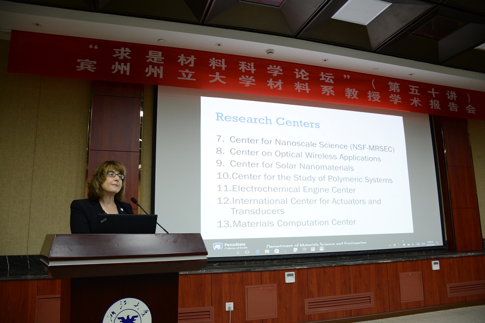报告会一开始,吴老师先向同学们介绍了宾州州立大学材料系主任Prof. Susan B.Sinnot的基本信息,接着Prof. Susan B. Sinnot向同学们介绍了宾州州立大学材料系的基本情况。宾州州立大学材料系目前有30名全职教师、30名兼任教师、168名毕业生和350多名在校生。他们在透明金属的合成、新型二维材料、计算材料科学等领域的研究水平位于世界前沿。