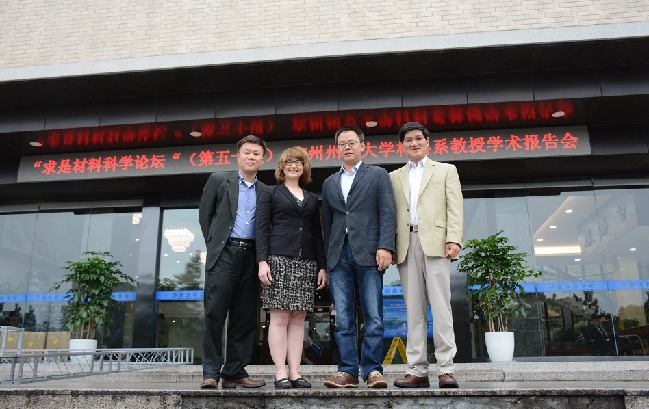 一一2016年10月21日上午9点,“求是材料科学论坛”(第五十讲)——宾州州立大学材料系教授学术报告会在邵逸夫科技馆211报告厅顺利举行。本次报告会由浙江大学材料学院吴勇军副院长主持,来自宾州州立大学的Prof. Susan B. Sinnot、Prof. Qing Wang和Prof. Long-Qing Chen给在场的师生带来了精彩非凡的学术报告。其中Prof. Susan B. Sinnot作为宾州州立大学材料系主任,她的到来无疑给浙大与宾州材料院系的交流合作带来非常好的促进作用。材料学院广大师生慕名而来,报告会座无虚席。