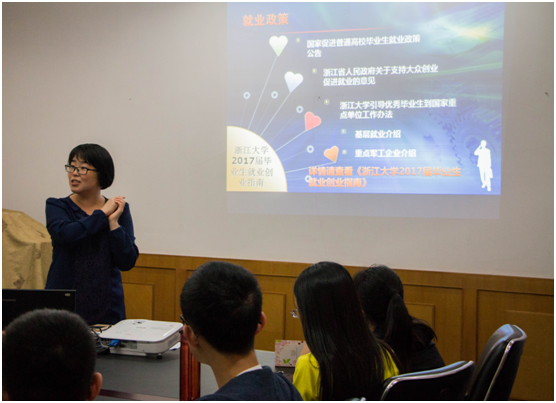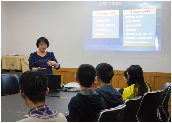 会上,刘艳辉老师就历届毕业生就业情况,国家就业政策,如何看待就业形势,大学生就业渠道以及就业指导系列活动等内容进行了详细的介绍与分析。在其中,刘艳辉老师着重向同学们推荐了学校里相关的就业资源和信息平台,建议有就业倾向的同学们多与就业指导老师进行沟通,多利用学校丰富的资源和渠道。