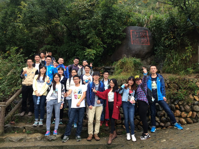 我们的徙步活动选在了“吴越古道”,其全长约35公里,为五代十国时期吴越(杭州临安)与南唐(宣城宁国)的主要通道。吴越古道建于五代,曾是埋没忠骨的古战场,太平盛世时又成为贯通吴越跟南唐的必经之路,山人由此采药去,商旅从此走向他乡。征战、古寺、山水,甚至佳姻……关于古老岁月的一切回忆和遐想,在这条长达三十五公里的古道沿途,都能找到最真切的诠释。这里更有着红军的战斗遗址,在山腰处保留有吕辉、蒋辉所领导的红军游击队的驻扎、战斗的遗址,如红军建造的石屋、红军石刻、红军建设的石板路、红军挖建的战壕等。此次“吴越古道”之行,我们结合了理论的学习与实践的感受来体会长征的精神,学习习总书记在纪念长征胜利80周年的讲话。
