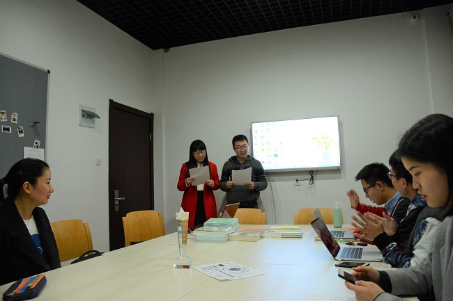 首先第一小组王晖同学、黄鹏同学向大家展示了一本书——《新参者》,书中讲到所有事情的产生离不开一个情字,无论多么严谨的逻辑在遇到情时都无能无力!两位小组成员为我们讲述了其中一小篇章的故事,故事本身则是通过,同时两位同学也生动形象的演绎了心思细腻的男主人公的的推理过程来反映主人公最典型的性格特点。在这本推理小说里,推理不是重点,而是要找出人们各种行为的原因,找到凶手也不是目的,而是要彻查案件的原因,否则就不能被真正救赎!救赎之后,才会放开束缚,陈述案件的真相!