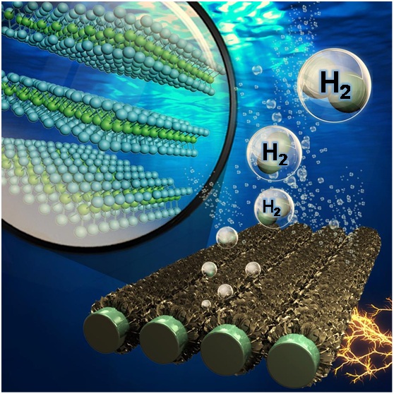 氢能是公认的清洁能源。电催化产氢是一种极其有效的产氢技术,然而目前使用的贵金属铂(Pt)和Pt基合金催化剂因其低自然丰度和高昂价格限制了其工业化应用。MoSe2是一种优良的非贵金属催化剂,但是块状粉末2H相MoSe2颗粒是宽带隙半导体,电导率偏低,且催化活性中心少导致电催化产氢效率低下。针对这些问题,邓盛珏及其所属课题团队利用等离子体增强化学气相沉积(PECVD)法制备的三维多孔垂直石墨烯阵列(VG)作为导电基底,并结合水热法制备了核壳结构VG/MoSe2阵列。尽管VG能为MoSe2提供良好的电子传导性,但是MoSe2一般以半导体性质的2H相出现,削弱了电催化产氢性能。因此,为了进一步改善VG/MoSe2阵列的催化析氢性能,研究人员对其进行氨气热处理改性,通过N掺杂引发MoSe2内部的2H到1T相转,最终形成2H-1T复合相。1T相的MoSe2具有窄的能带宽度,表现出金属性质,极大改善了催化过程中的电子传输。同时,N引入进一步增加了MoSe2片层边缘位置析氢活性位点。结合阵列多孔的一体化催设计,上述N- MoSe2/VG 阵列展现出优异的催化性能如低的过电位和大催化电流。上述研究成果对过渡金属硫化物在电化学析氢中的应用有着积极的推动作用。