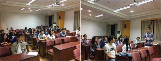 随后由贾飞和林威豪两位学长先后向大家介绍了考研的经验。他们深情又有些戏谑地向大家诉说了那段孤独悲惨的考研经历,还大致讲了一下考研要考什么以及每一门考试如何应试。他们的经历大体相同,都是在大三阶段,确认了自己无路可退的境地之后,着手准备考研资料,然后就是起早贪黑的学习刷题。学长们劝诫本科生同学在本科阶段一定要好好学习专业基础知识,与他人竞争减少自己要走考研这条路的几率。还有注意自己在专业的排名,因为很有可能下一个无奈要从事考研的人就在在座同学的之中。两位学长的考研经验和应试准备建议对本科生同学以后有很好的指导借鉴意义。