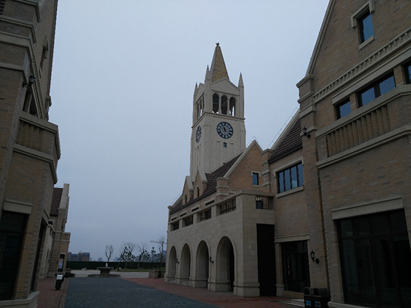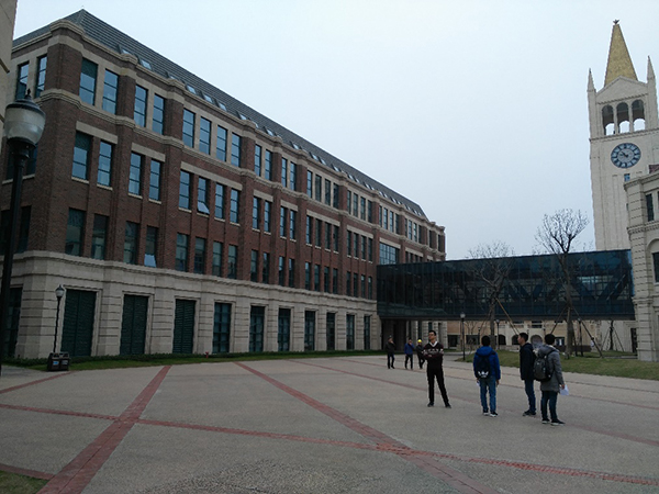 随后我们来到了浙江大学海宁校区,感受着东西方文化在这里的交融,其融合红砖、朴素、学术气息较浓厚的风格让我们赞不绝口,我们一行参观了图书馆、教学区、书院的乐队房、琴房、健身房、讨论室等设施。大家一边浏览一边谈笑,沉醉于这海宁校区的美景中,对国际校区的建设充满期待参观结束后,我们在校区食堂集体用中餐,食堂的欧式风格让大家流连忘返!由于海宁只有部分建筑对外开放,所以当天我们只参观海宁校区的一小部分,在各种不情愿下,我们最终还是离开了这里。