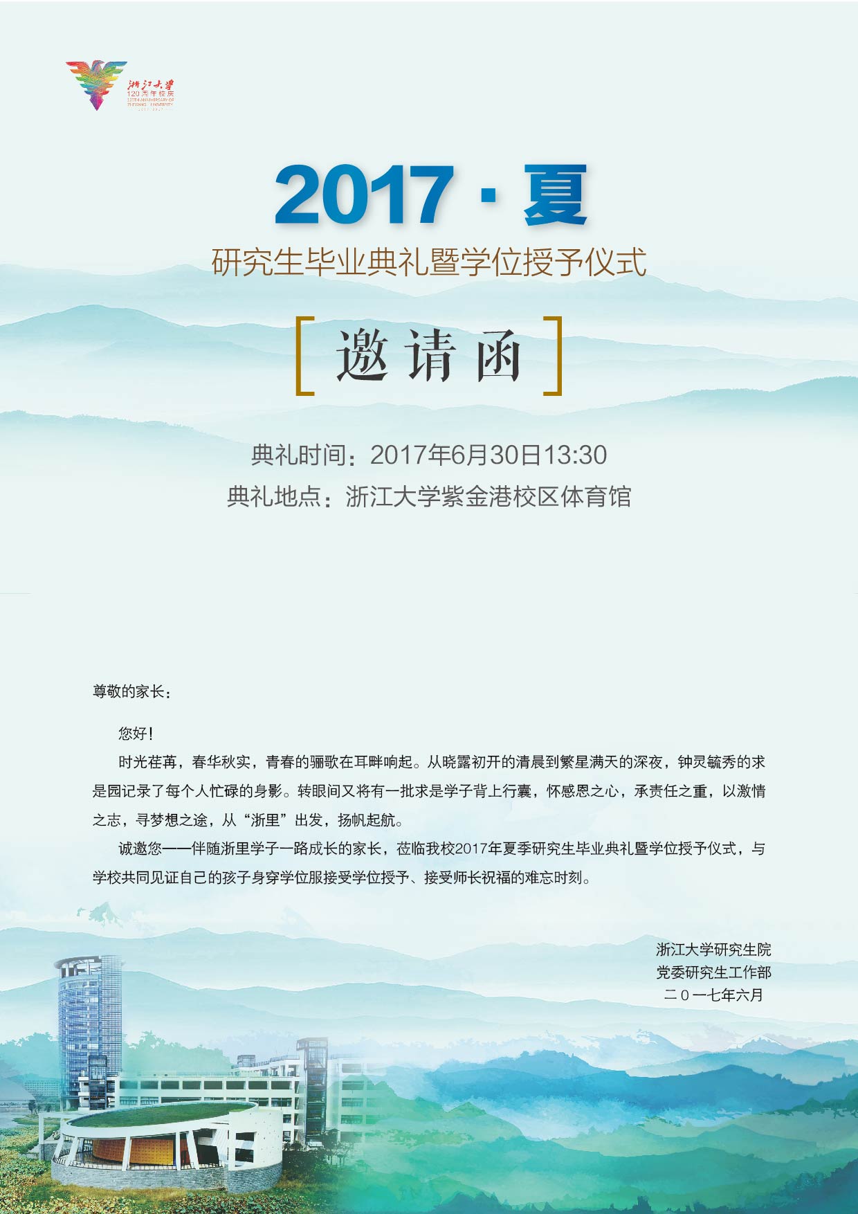 2017届夏季学生毕业典礼与学位授予仪式6月30日(星期五)下午13:15在紫金港体育馆举行,现将有关事项通知如下: