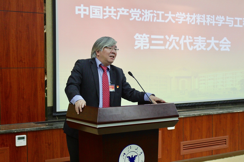 大会在庄严的《国歌》中拉开序幕,浙江大学党委副书记郑强同志代表学校对大会的隆重召开表示热烈祝贺并作重要讲话。他充分肯定了材料学院党委在过去四年来带领全院广大党员和师生员工积极参与校院建设取得的突出业绩,希望党员代表能不忘初心,砥砺前行,牢记使命,在奋斗前行的路上,要懂得感恩党的关怀,感恩为我们打下坚实基础的先辈们。希望我们党员代表保持前辈们艰苦创业时的勇气和锐气、胆识和担当,放眼世界,把握当下,用坚定的信念,开拓更加灿烂的材料学科事业,为材料学院在新时代取得新辉煌不懈奋斗。