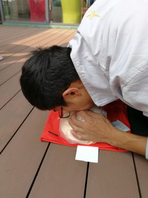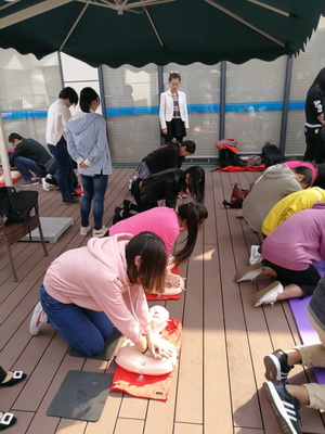之后,培训小组的专业急救员为大家演示了心肺复苏的操作。同学们跃跃欲试,分组进行了实际体验。同学们纷纷感叹,心肺复苏是技术活也是体力活,但是为了利人利己,关键时刻能够挽救生命,我们的确应该认真学习并勤加练习。