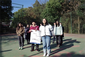 虽然时处寒冬,但中午时分的太阳还是晒得人懒洋洋的。在素拓师的组织下,同学们先进行了暖场活动。在“抓水”游戏中,同学们聚精会神听着素拓师说出的每一个字,尽管出现很多干扰,但是大家目标明确,精神专注;在“鼓掌”游戏中,每个人对自己五秒钟能鼓掌多少次先做了估计,但是当真正鼓掌的时候都发现之前低估了自己,所以保持积极的态度,相信自己的潜力是很重要的。