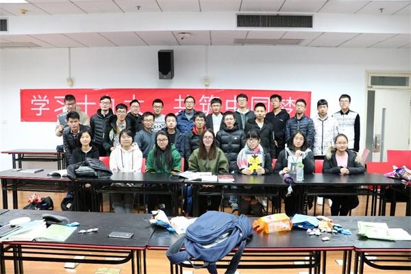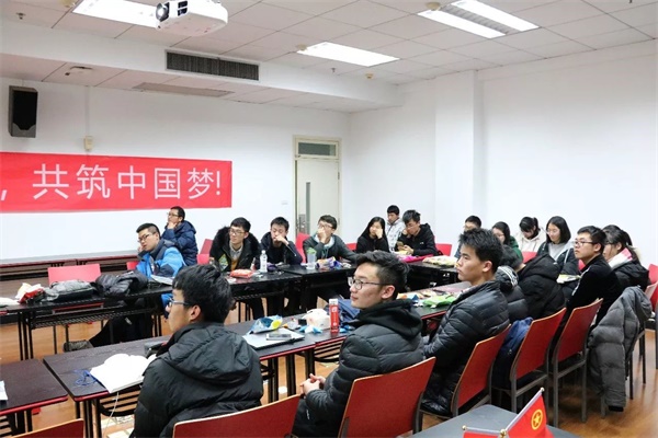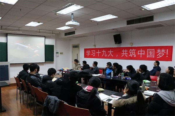 2017年12月27日,踩着一年的尾巴,浙江大学材料学院1602支部25位同学在东一B-201教室举行了“喜迎十九大,共筑中国梦”主题班会。班主任刘毅老师与全班同学共同学习党的十九大精神,以多样的形式表达了对祖国的热爱,分享了学习十九大精神的体会。同学们在一年的末尾交流心得经验,聆听身边优秀代表的切身体会,展望新的一年。