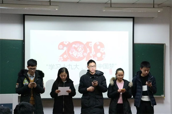 班会伊始,班长胡宇丹首先对大家的到场表示欢迎并代表全班同学对班主任刘毅老师百忙中从玉泉赶来参加这次班会表示感谢。在班长对党的十九大进行了简单地介绍之后,全班同学通过一个简短的视频对十九大进行了更加深入的了解。