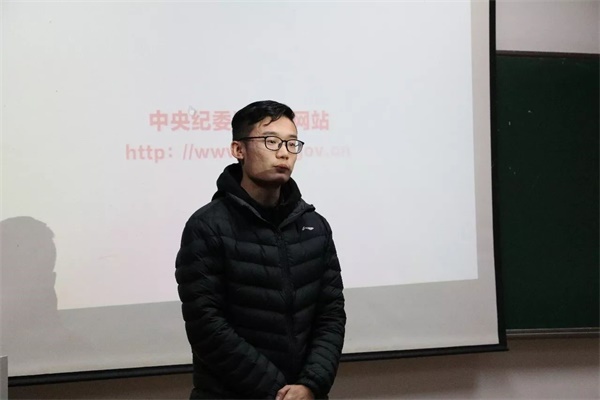 在视频观看结束之后,预备党员李飞雨同学给大家分享了他心中的“十九大”,畅谈自己对青年学生学习十九大精神的理解。飞雨说,我们新时代大学生学习党的十九大精神,不仅要在传统形式上努力,更要付诸在我们日常的学习生活与实际行动中,让十九大精神真正贴近到我们的一言一行,这样才能有更深的认识和体会,也更有实际价值和意义。