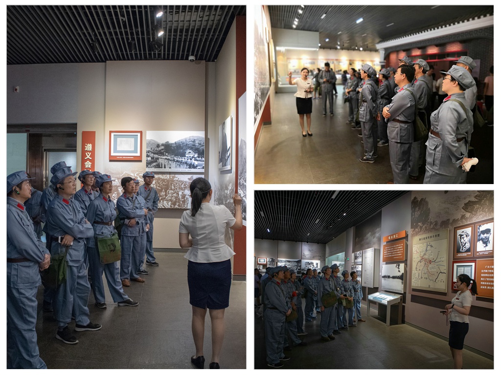 27日上午,培训团前往遵义凤凰山红军烈士陵园。在红军烈士纪念碑前,培训团向红军烈士们敬献花篮,并默哀、鞠躬,以此缅怀先烈英雄们。在庄严的中国共产党党旗前,刘艳辉书记带领大家重温入党誓词,致敬革命先烈。随后,大家井然有序地瞻仰了烈士陵园,进一步了解了烈士们的英勇事迹。从烈士陵园出来后,培训团前往遵义会议会址、陈列馆。会址陈列馆保留了当年遵义会议会议室、办公室、卧室、文物和资料等诸多历史文物,让大家切身感受到了老一辈无产阶级革命家在当时艰苦的革命斗争环境下领导中国革命发展的艰难历程。