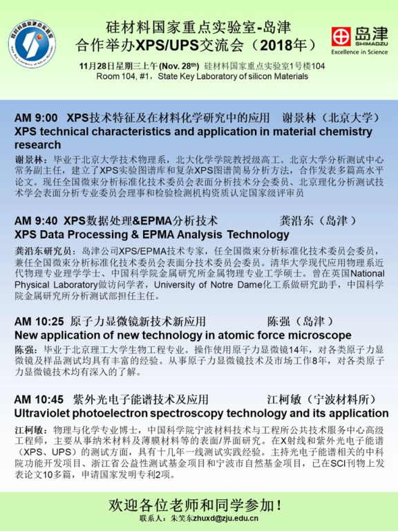 2018年硅材料国家重点实验室--岛津合作举办XPS/UPS交流会的通知