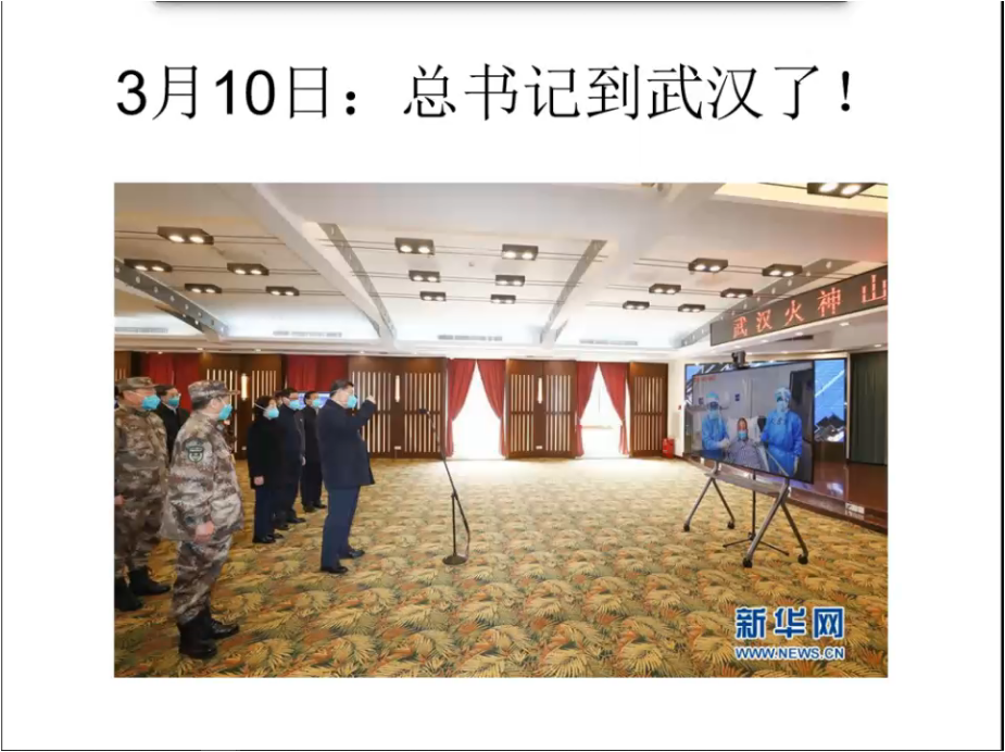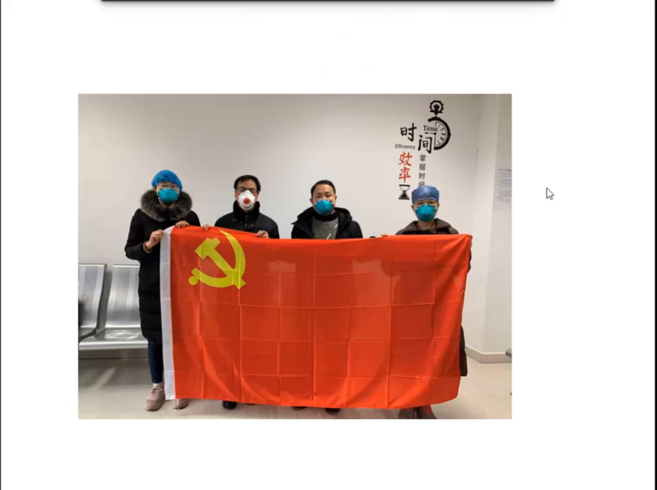武汉保卫战我们为什么能赢?陈作兵老师围绕这一主题分享着自己在一线战斗中的所见所闻,也将内心的感受与思考传递给与会者。他认为抗“疫”制胜因素首先是制度优势,国家能够集中力量办大事。短期内400支医疗队、4万多名医护人员到达武汉,以总书记为总指挥的垂直指挥模式,全国动员保卫武汉等等措施,这都体现了我国卓越的政治领导力、思想引领力和社会号召力,这是这些高效凝聚了抗“疫”力量。作为党员,陈老师和第一批医疗队中的其他三个党员一起建立了“支援武汉重症肺炎救治临时党支部”。这或许是浙江大学“最小”的党支部,但支部党员发挥带头作用、将党旗插在病房里,充分发挥了支部的战斗堡垒作用。